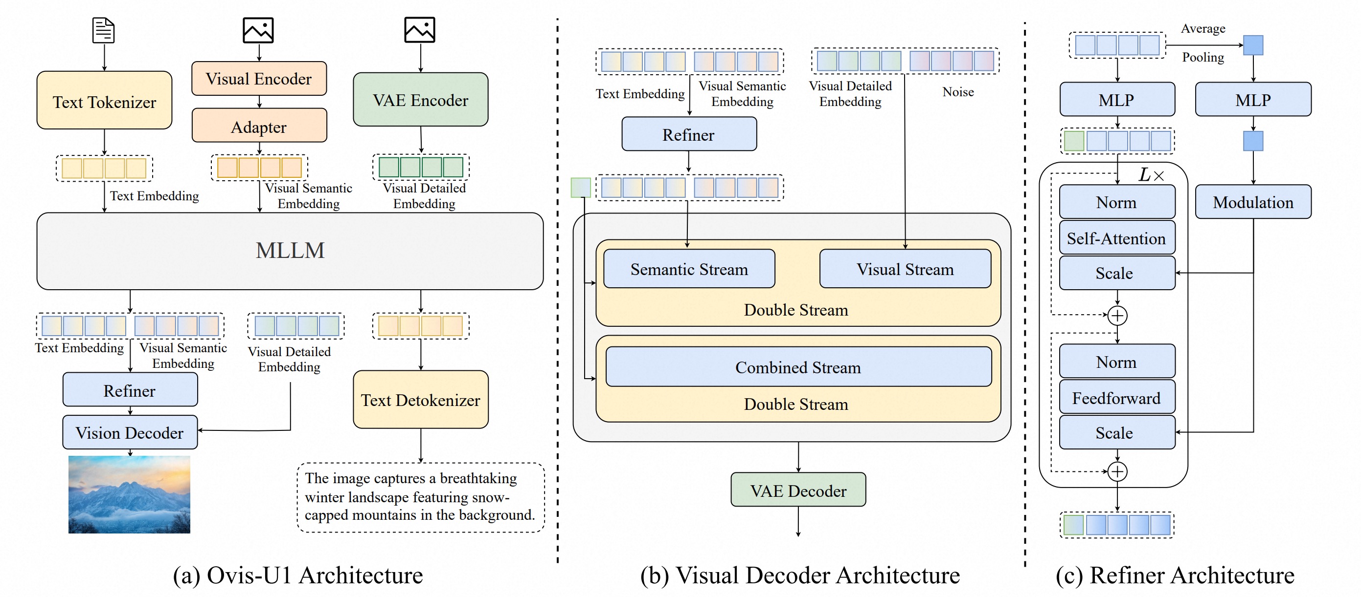 The overall architecture of Ovis-U1 (cf. Fig.2 in our report).