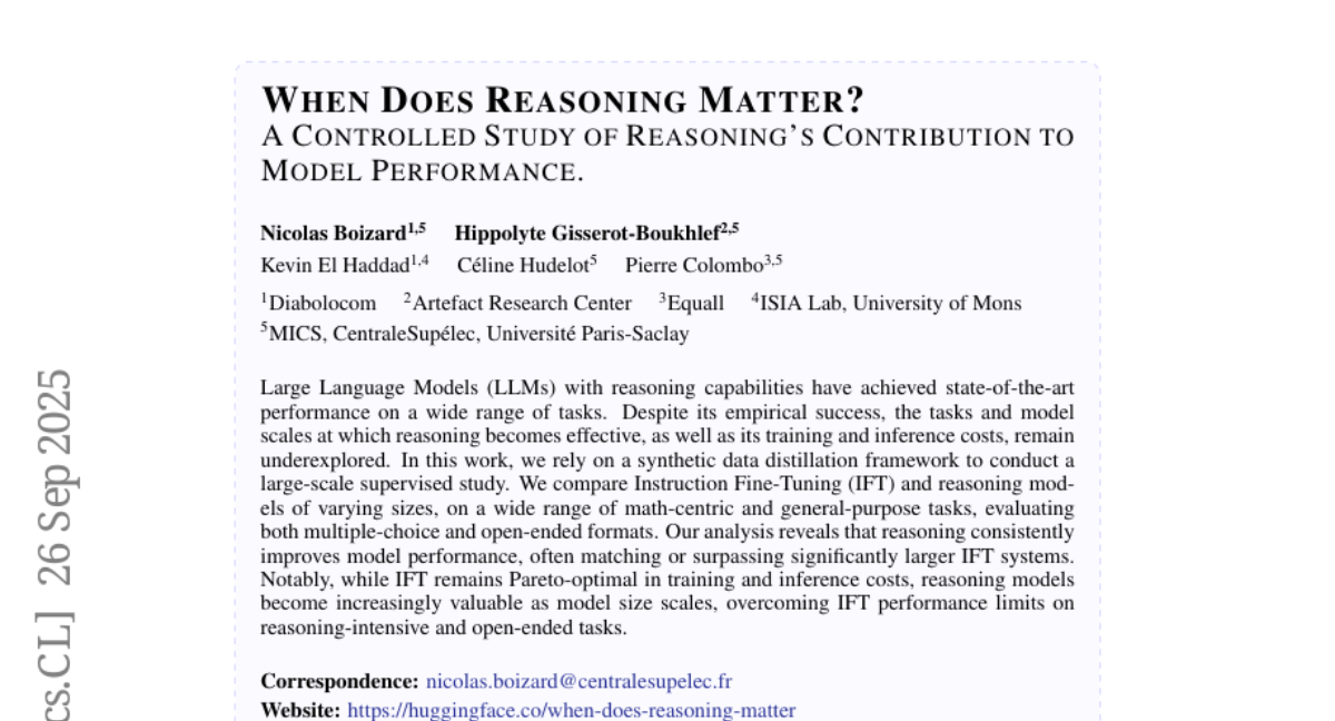 When Does Reasoning Matter? A Controlled Study of Reasoning's Contribution to Model Performance Paper • 2509.22193 • Published Sep 26 • 37