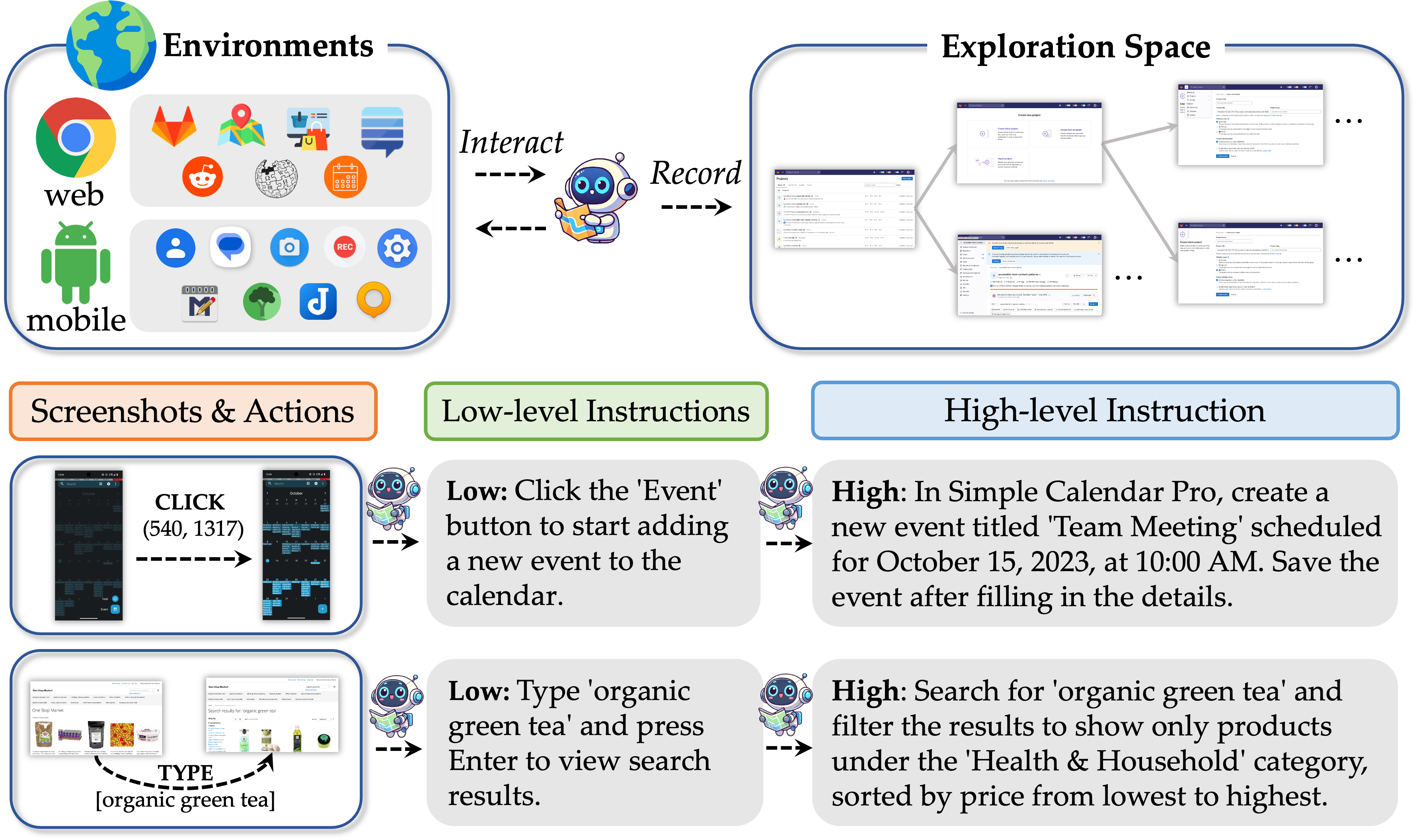We introduce OS-Genesis, an interaction-driven pipeline that synthesizes high-quality and diverse GUI agent trajectory data without human supervision. By leveraging reverse task synthesis, OS-Genesis enables effective training of GUI agents to achieve superior performance on dynamic benchmarks such as AndroidWorld and WebArena.