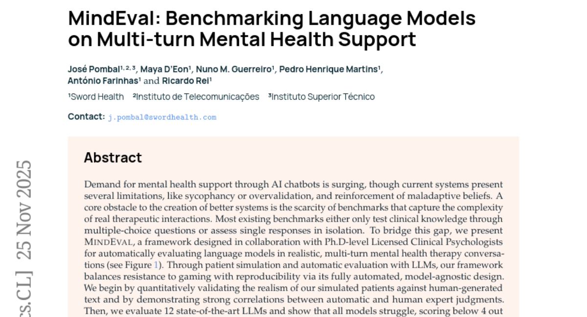 MindEval: Benchmarking Language Models on Multi-turn Mental Health Support