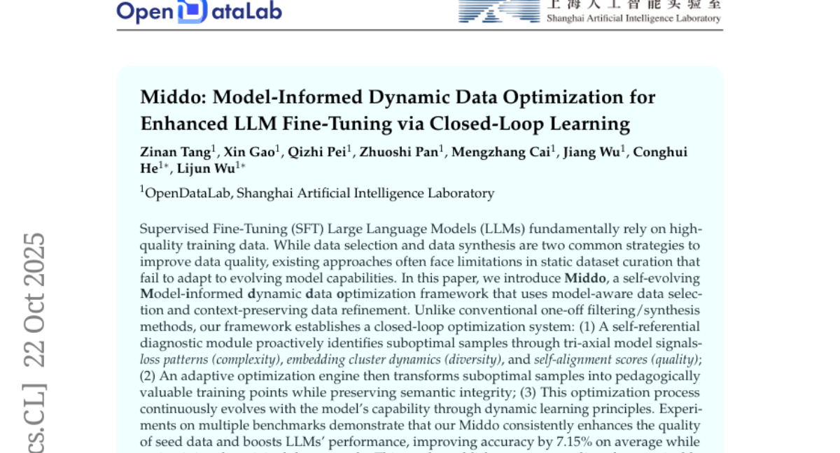 Dataset & Models for paper "Middo: Model-Informed Dynamic Data Optimization for Enhanced LLM Fine-Tuning via Closed-Loop Learning"