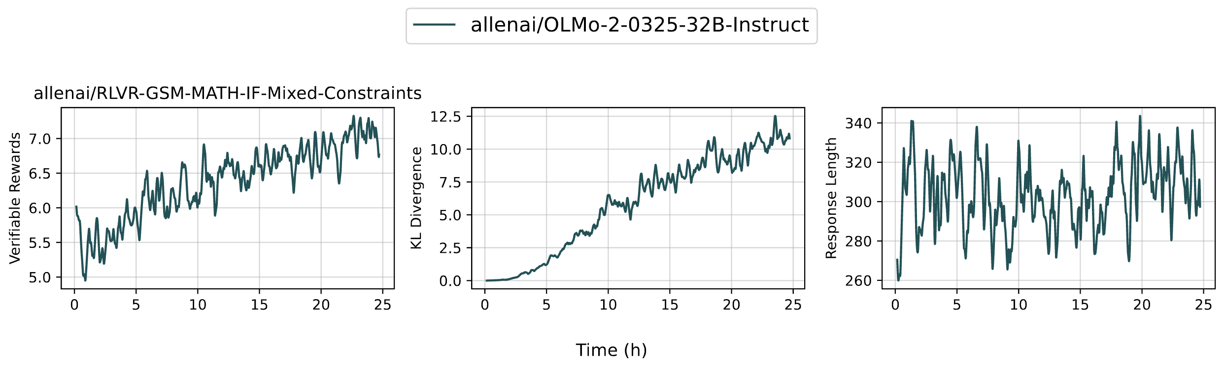 Below is the training curves for allenai/OLMo-2-0325-32B-Instruct. The model was trained using 5 8xH100 nodes.