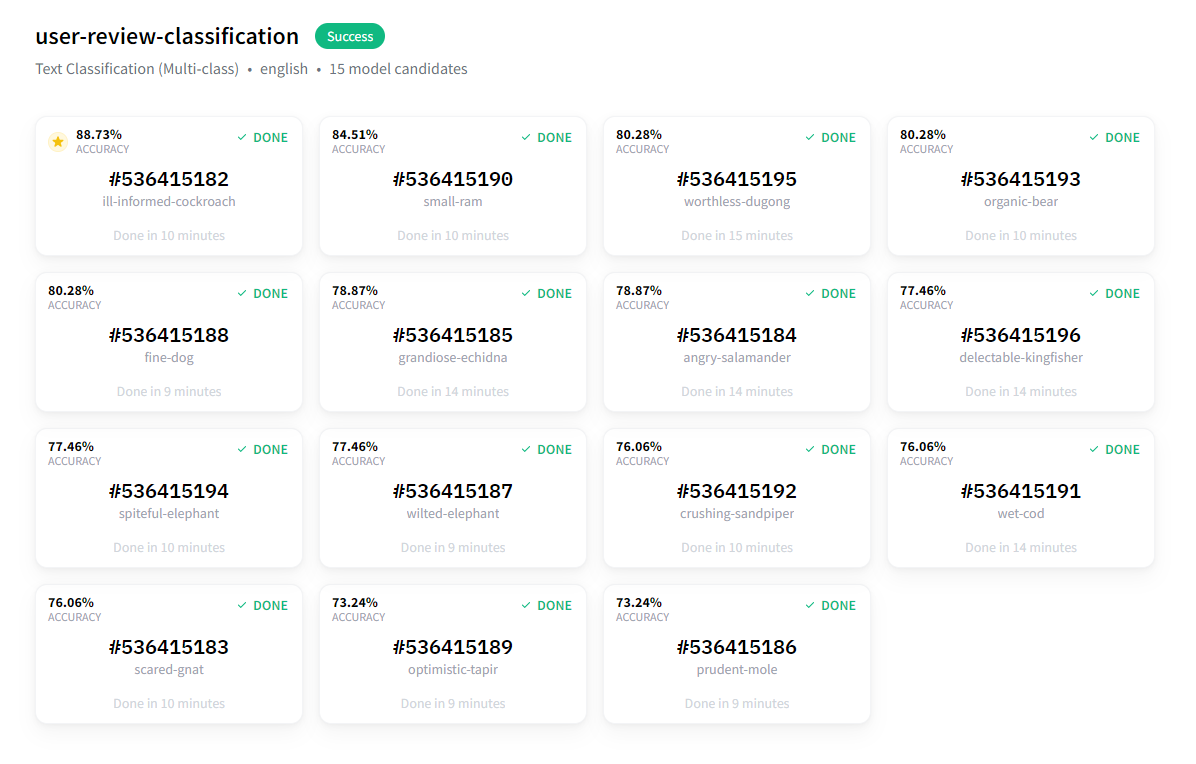 We used HuggingFace’s powerful APIs and AutoTrain along with Kili’s easy-to-use interface in this example. The modeling with AutoTrain just took 30 minutes, it chose the models and trained them for our use. AutoTrain is definitely much more efficient since I spent more time as I develop the model by myself.