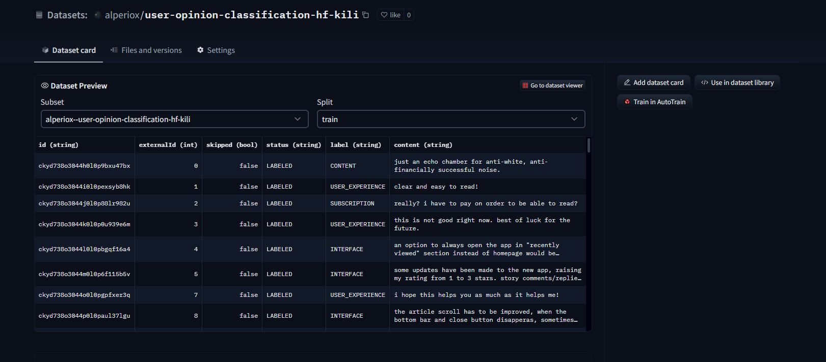 Opinion Classification with Kili and HuggingFace AutoTrain
