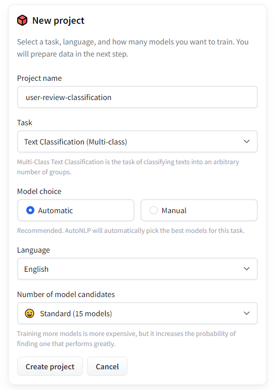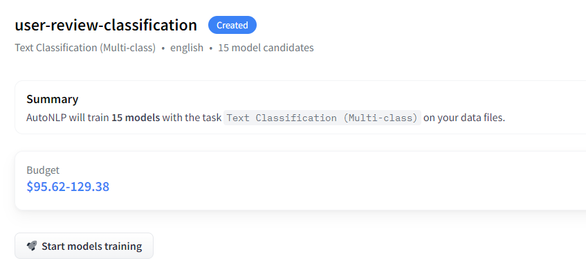 Cleaning the data, model selection, and hyper-parameter optimization steps are all fully automated in AutoTrain. One can fully utilize this framework to build production-ready SOTA transformer models for a specific task. Currently, AutoTrain supports binary and multi-label text classification, token classification, extractive question answering, text summarization, and text scoring. It also supports many languages like English, German, French, Spanish, Finnish, Swedish, Hindi, Dutch, and more. If your language is not supported by AutoTrain, it is also possible to use custom models with custom tokenizers.