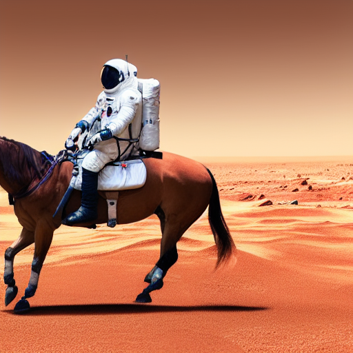 prompt = "A photograph of an astronaut riding a horse on Mars, high resolution, high definition."