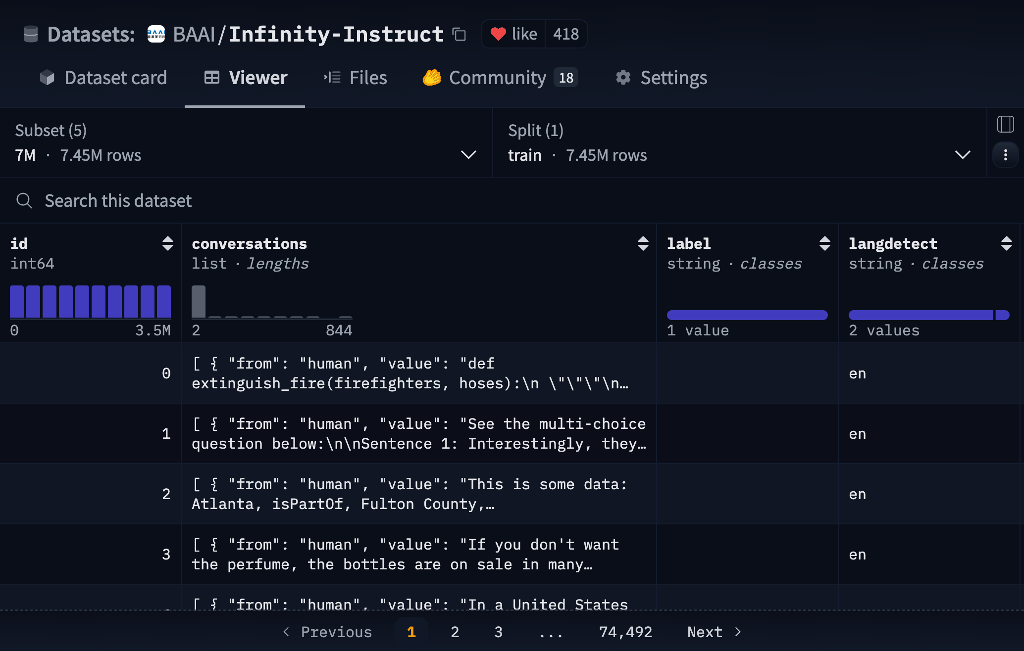 >>> df = spark.read.format("huggingface").option("config", "7M").load("BAAI/Infinity-Instruct")