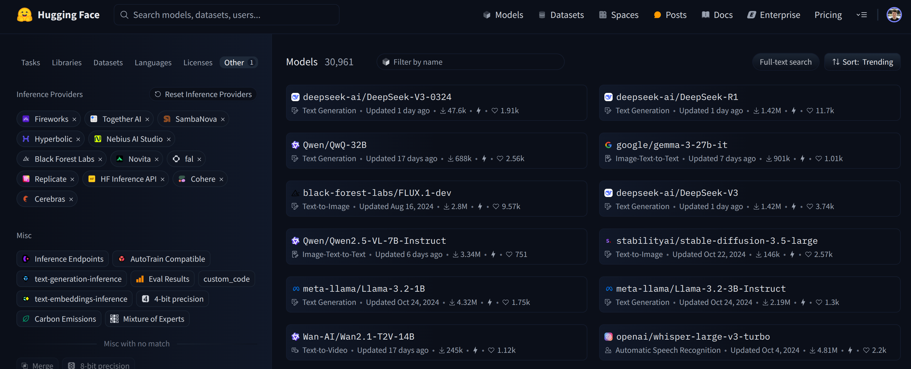 It is also possible to select all or multiple providers and filter their available models: https://huggingface.co/models?inference_provider=all.