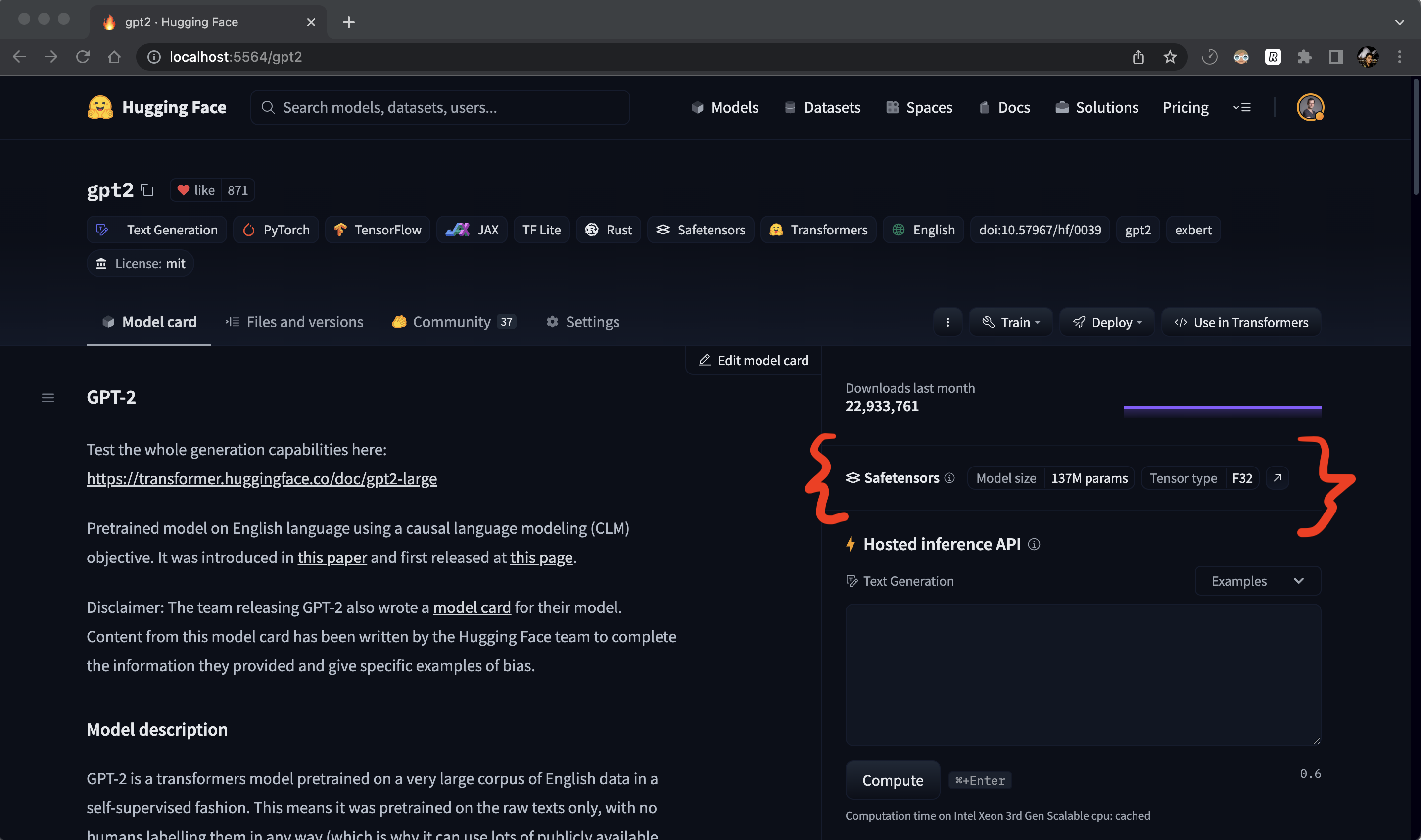 From π€ Hub, you can get metadata of a model with HTTP range requests instead of downloading the entire safetensors file with all the weights. In this example python script below (you can use any language that has HTTP requests support), we are parsing metadata of gpt2.