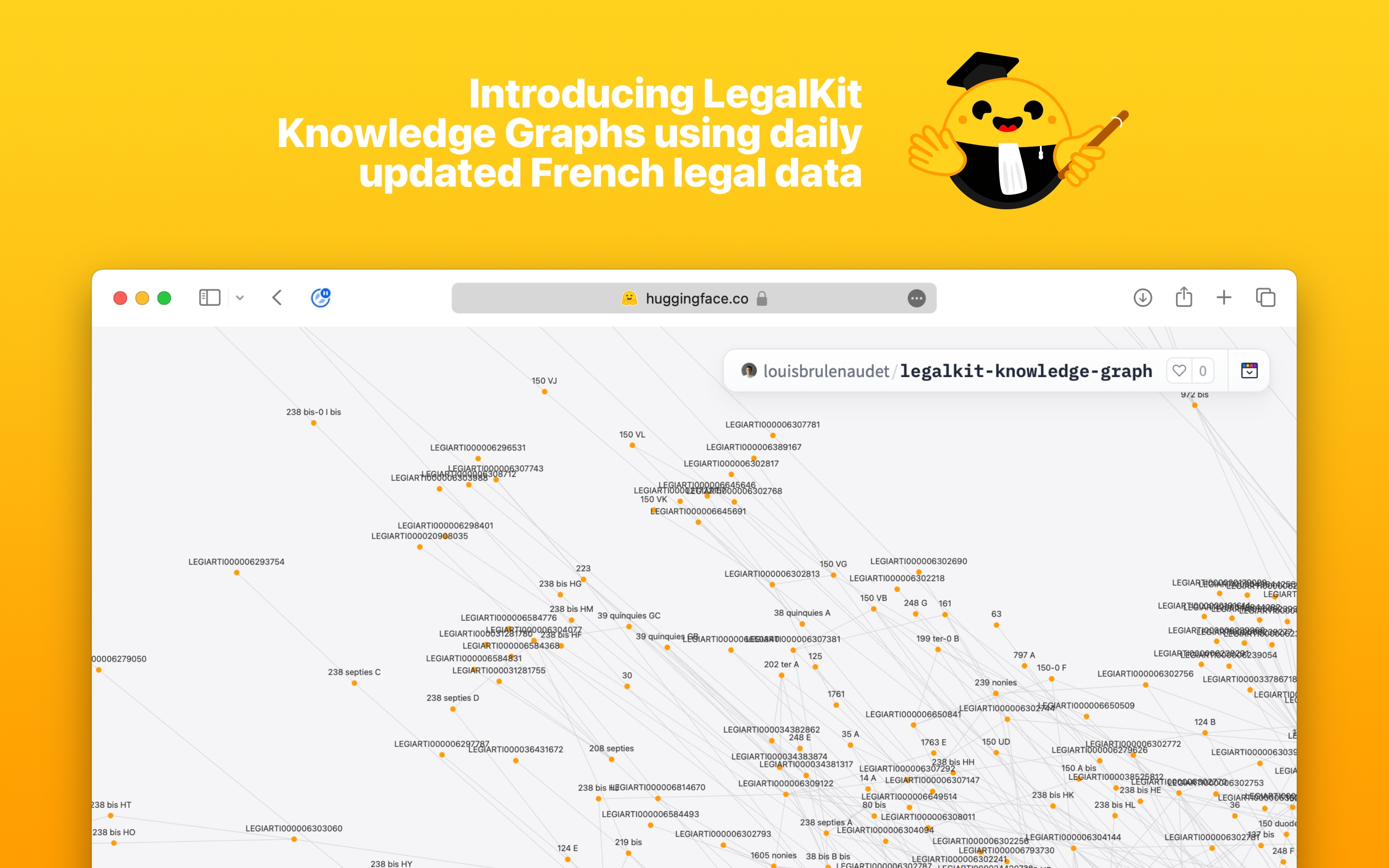 An example of the application of LegalKit is the production of knowledge graphs, here is a demo Space 🔗