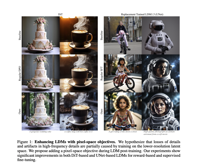 Adding pixel-space supervision to latent diffusion models improves high-frequency detail preservation during post-training without compromising text alignment quality.