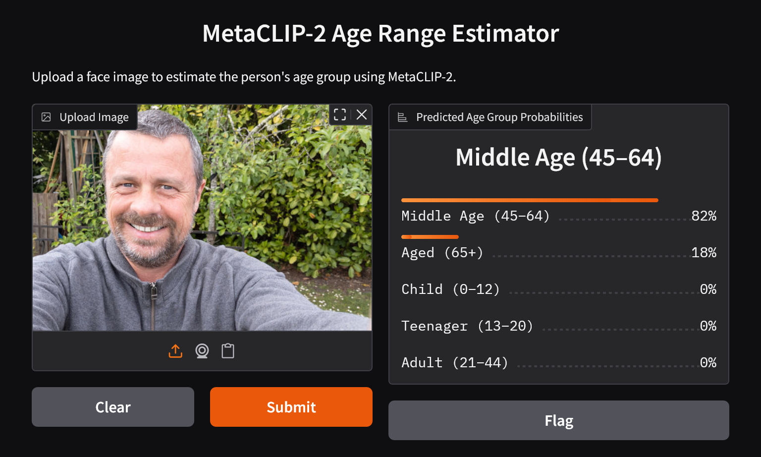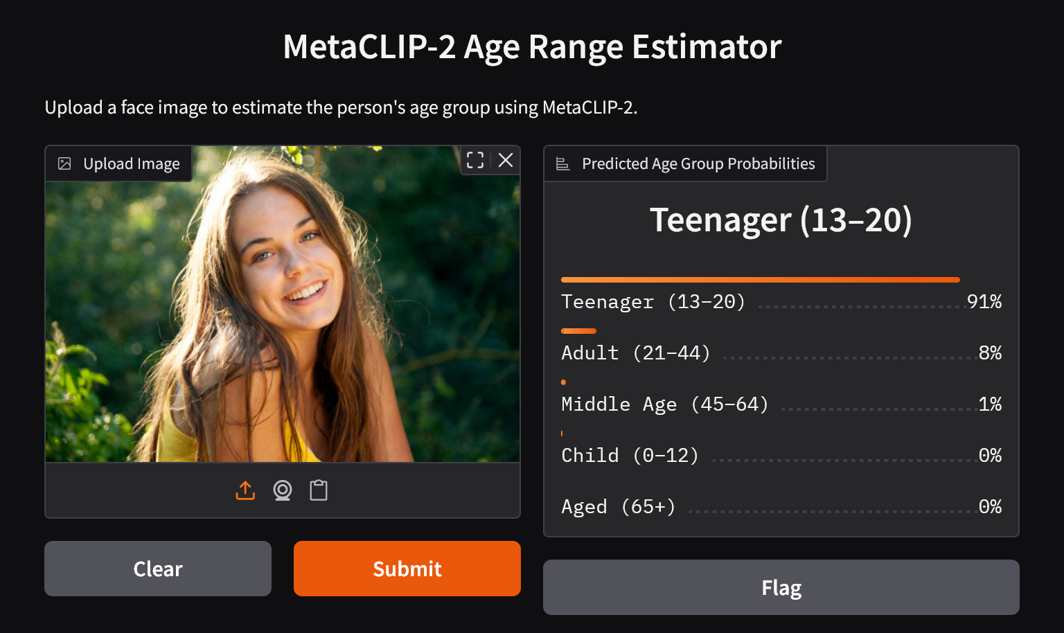 description="Upload a face image to estimate the person's age group using MetaCLIP-2."