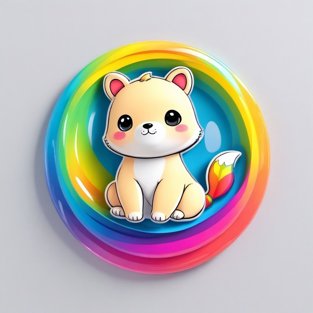 - one chibi avatar cute animal, flat 3d, colorful, inside a raibow circle, white reflective background,