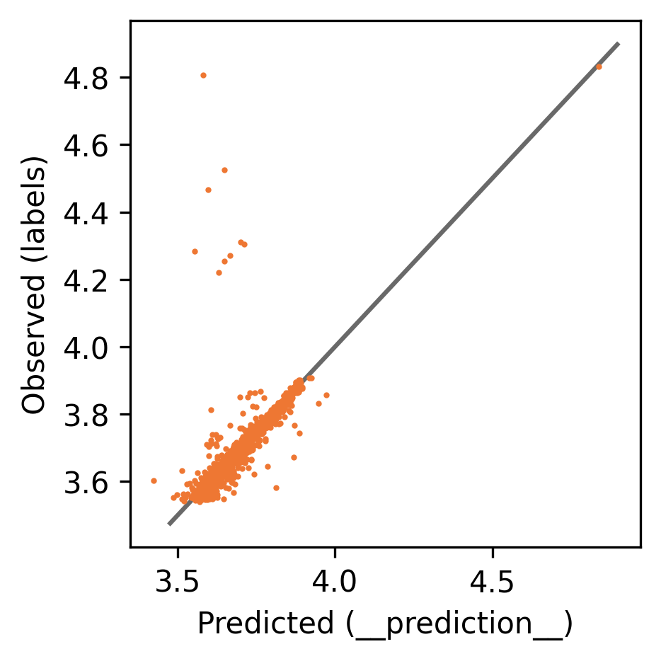 This model is the best regression model from a hyperparameter search, determined by Pearson's $$r$$ on a held-out test set not used in training or early stopping.